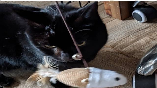 ❹遊び好きな子は猫じゃらし おもちゃ スキンシップ等猫の様子を見つつお留守番中のストレス解消に運動を行います。